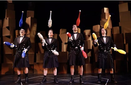 The Flying Karamazov Brothers have been defying gravity and expectations for over fifty years with their signature blend of juggling, theater, and irreverent humor. Founded in 1973 by Howard Patterson and Paul Magid—college roommates at UC Santa Cruz—the troupe quickly grew to include Randy Nelson, Timothy Furst, and a rotating cast of wildly talented performers.